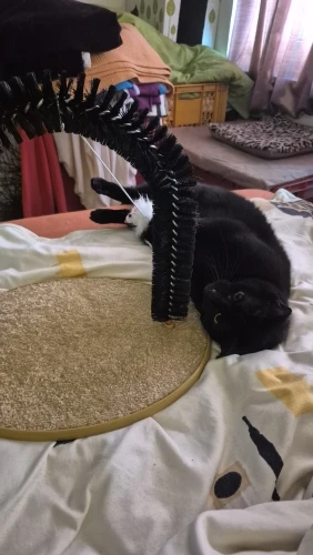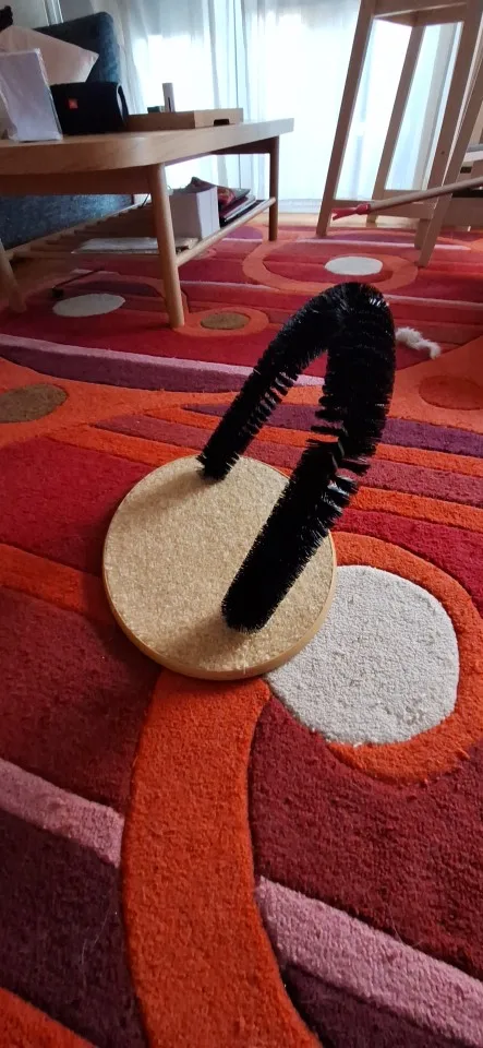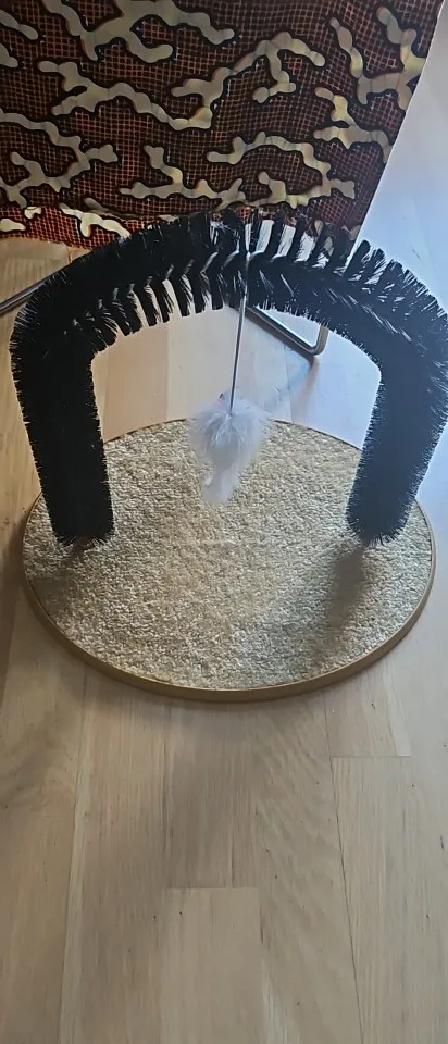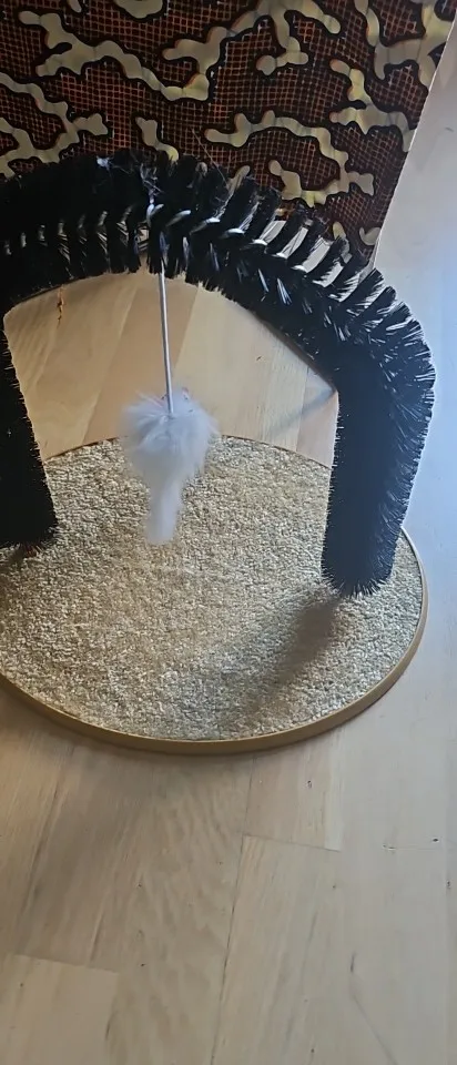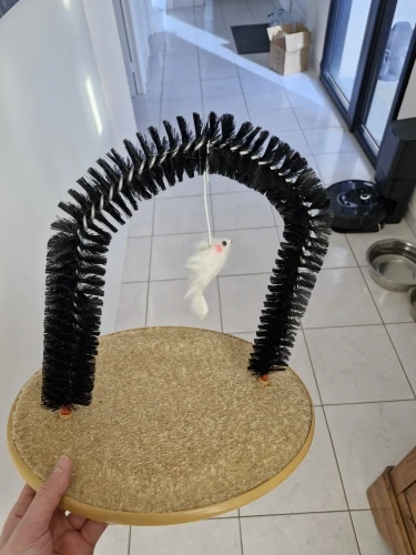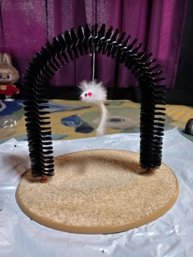 Great toy, the brush fits perfectly in the bottom part, the mouse is the crowning touch, my cats love it, you still have to get used to the brush, the first attempts have been a success for the cats. . Here are a few photos. . The toy is a bit light. . falls over when the mouse is moved vigorously. . I secure it with double-sided tape. . then it should be perfect.