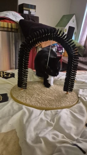 Interactive Cat Grooming Arch with Massage Brush and Scratching Pad