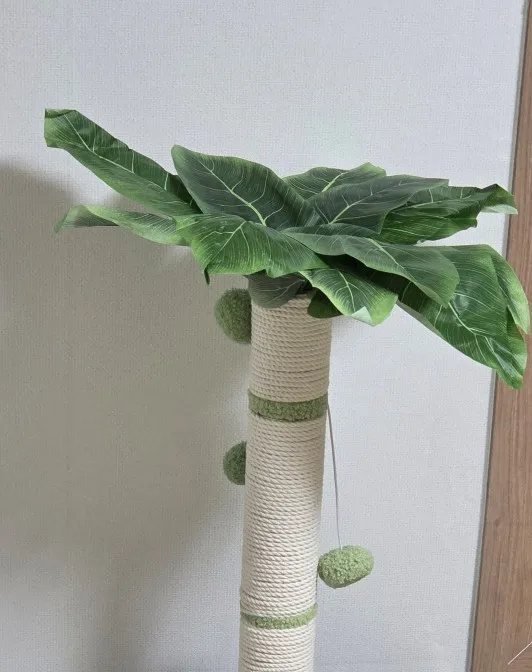Indoor Cat Scratching Post with Sisal Rope and Leaf Design for Kittens and Cats