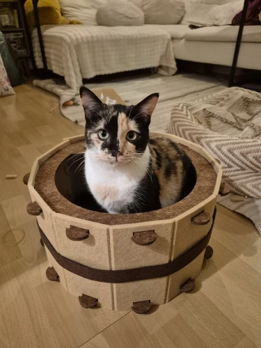 Semi-Enclosed Barrel-Shaped Cat House - Comfortable and Durable Cat Bed Cave for All Seasons