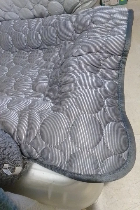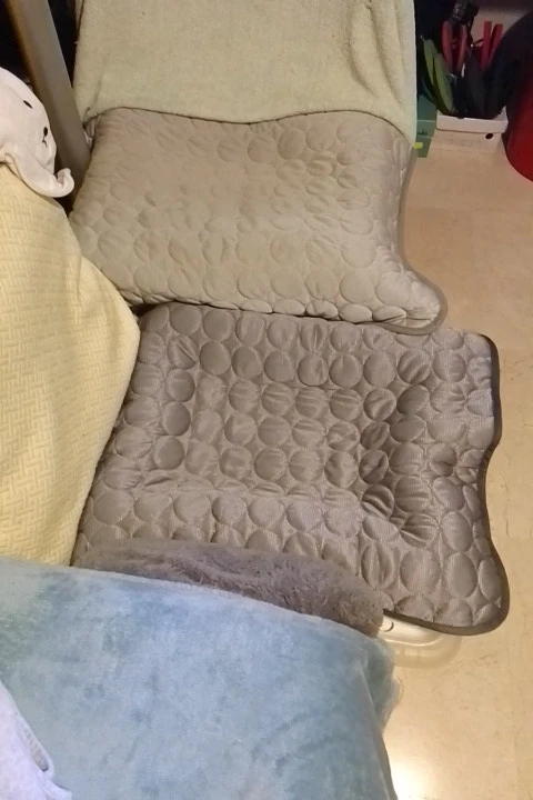 The quilt is exactly as it appears in the photo and as described in the advertisement. When you touch it, it feels cool and also soft, making it seem very comfortable for my dog and my kitten. I totally recommend it....