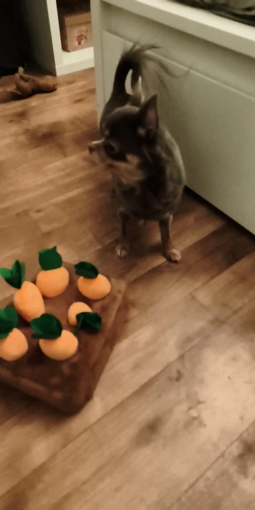 Who would have thought that a dog would be interested in agriculture, but now our little Michelle happily works with carrots.