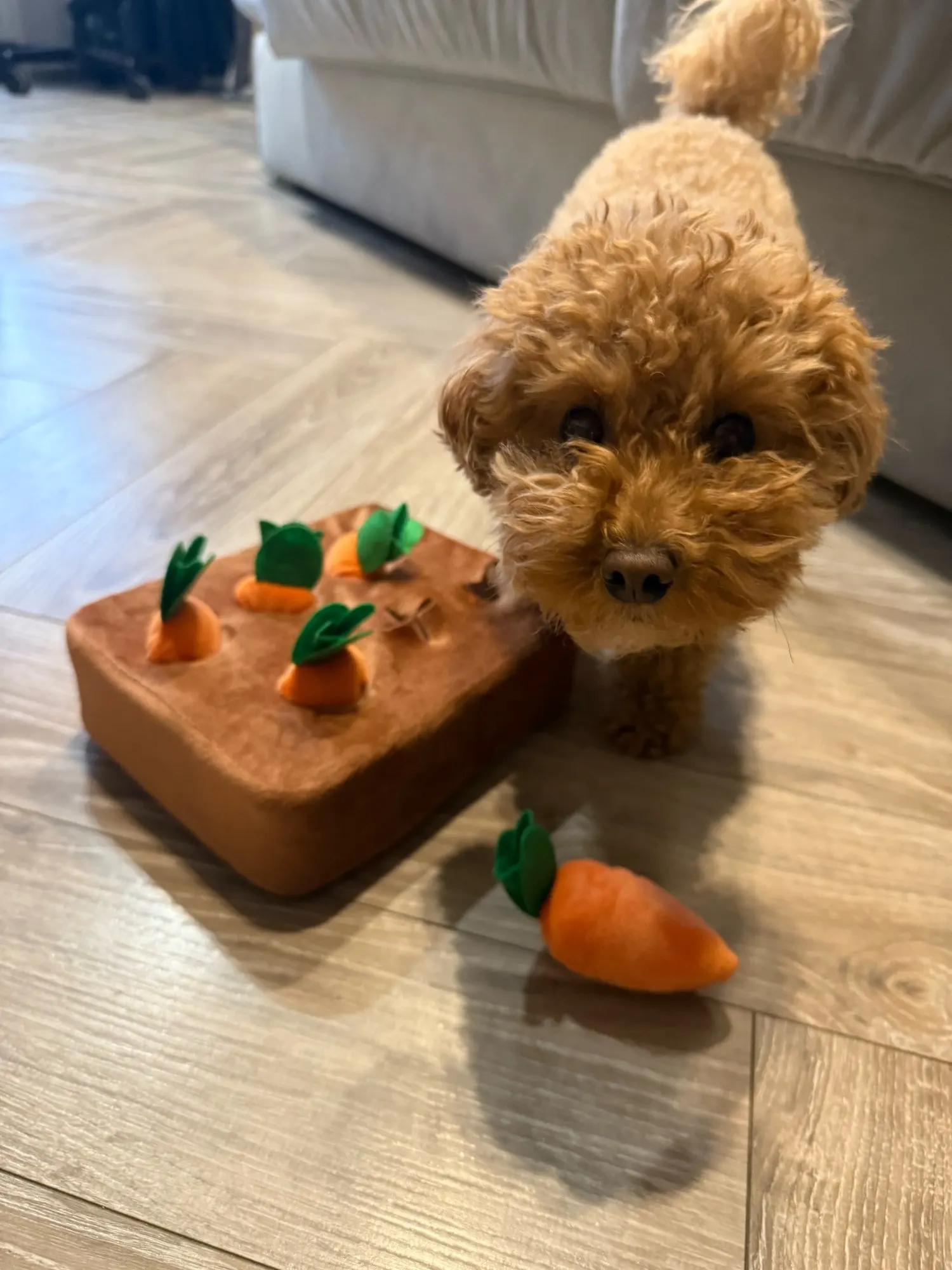 This Interactive Plush Carrot Dog Toy is designed specifically for small to medium pets, providing an excellent solution for both playtime and training. Made from high-quality cloth fleece, this plush toy is not only soft and cuddly but also bite-resistant, making it ideal for chewing and tugging. Its interactive nature encourages engagement, allowing pets to enjoy hours of fun while simultaneously honing their training skills. Whether used for fetch, tug-of-war, or as a comfort toy, this carrot-shaped accessory is a versatile addition to your pet's collection. The plush carrot toy serves as a valuable training aid, helping to reinforce good behavior and promote active play. Its vibrant design and appealing texture are sure to capture your pet's attention, making it an effective tool for stimulating their senses and keeping them entertained. Additionally, this toy is free from harmful chemicals, ensuring a safe and enjoyable experience for your furry friend. With its durable construction, you can trust that this toy will withstand the enthusiastic play of your beloved pet. - Made from high-quality, bite-resistant cloth fleece - Interactive design encourages engagement and play - Ideal for small to medium-sized dogs - Versatile use for fetch, tug-of-war, and training - Safe and free from harmful chemicals