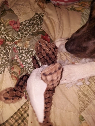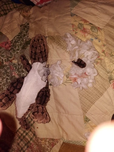 Well, its definitely a better quality stuffed animal than those i've bought from various chain "dollar" stores. The 5 photos i added here were taken over a 2 to 3 hour period. While this doesn't appear to be anything but bad, it retrospect its good compared to 99% of the stuffed toys i've given her over the past 3 years! Once the stuffing is exposed she always removes it all one bite at a time. The stitching on the shell held up for another 3 or 4 days, which is really good in comparison. If you've got a dog that sets out to separate the insides from outsides you can expect it will last 1 to 5 days. Mine played w it until i was tossing her just one leg. I believe this toy to be a somewhat higher quality than most i've experienced with heavily used highly rough situation and i think it will last most dogs a longer life than i experienced.