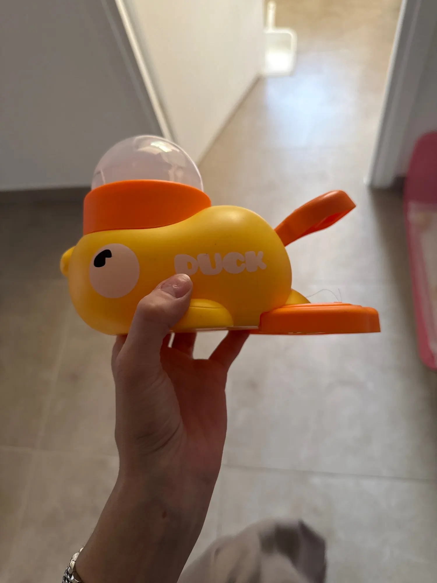 Isaac Mertz A cute duck. It arrived intact. The puppy was afraid at first, but got used to it very quickly. Can't press the pedal yet, we're still learning.
